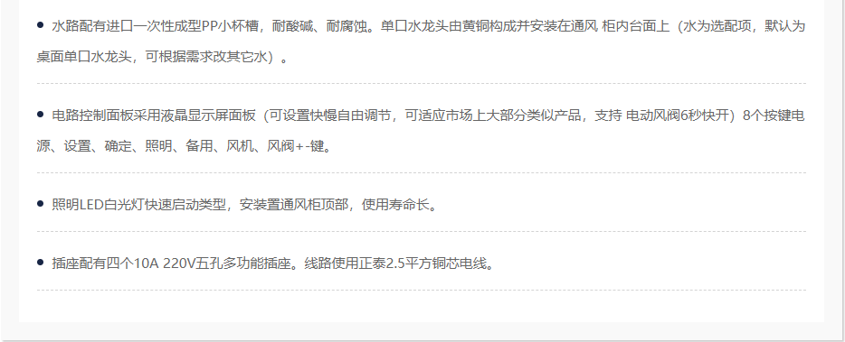 產品名(míng)稱:全鋼通風櫃【檢測報告(gào)、專利、IS09001係列質量保證體係認證、環境管理體係認(rèn)證、中國職業(yè)健康安全管理體係認證】 產品規格:支持定製長、寬、高誤差點≤3mm,門與門、門與抽屜縫隙:1mm≤縫隙間距≤2mm;地角平穩性:≤2mm 產品功能:耐酸堿、耐腐蝕、耐高溫、高精度(dù)、易清(qīng)洗、承重150kg+/台,下櫃層隔承重 50 kg+,每台通風櫃配漏電保護裝置,配風量調節液晶麵板,每個通風櫃可在單獨控製(zhì),通風櫃檢測風量要達到0.5m/s以上 產品應用(yòng):該產品用於研究院、高校、化妝(zhuāng)品、等實驗室 整體(tǐ)規(guī)劃全鋼通風櫃配套家具,耐酸堿(jiǎn)、耐(nài)腐蝕(shí)、耐高溫、高精度、易(yì)清洗(xǐ)、組合靈活、安裝便捷、美觀耐(nài)用可使用15年+、每台可承重150kg+,全方(fāng)位定製定,滿足客戶的需求。