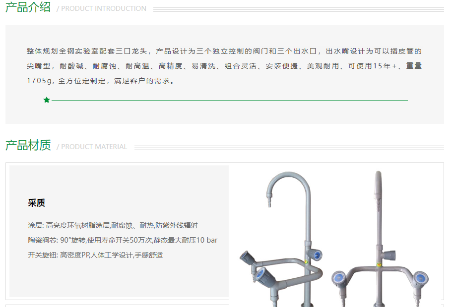 產品(pǐn)名稱:化驗室肘(zhǒu)式三口龍頭【檢測報告、專(zhuān)利、ISO9001係列質量保證體係認證、環境管理體係認(rèn)證、中國職業健康安全管理體係認證】